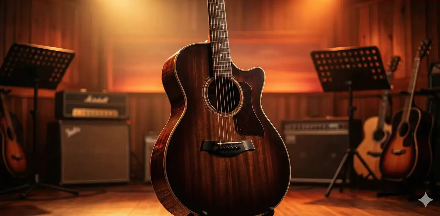 - Braço: Catalpa (ou Basswood, dependendo do lote) com tensor bi-direcional — ajuda a manter o braço reto mesmo com mudanças de clima.